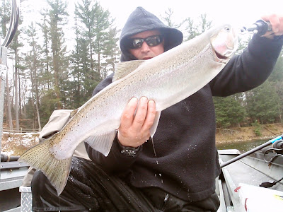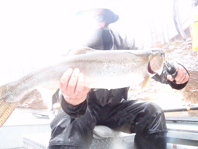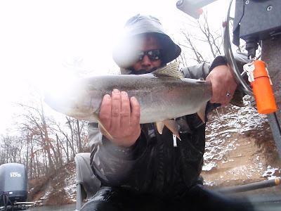 Is this winter fishing, or the start of the fall steelhead run we really never received back in November? I can’t believe the surge of fresh fish we hit today. Take a look at this 14 lb. female monster! Check out the video below letting her go. Fishing today on the MO was epic! We hooked more bright chrome today than we did in a long time. This current weather pattern is producing some outstanding fishing! Water levels are decent and water temps are hovering right around the 40 degree mark. Take advantage of the fishing now before the cold sets in. Give us a call (616) 460-6052.