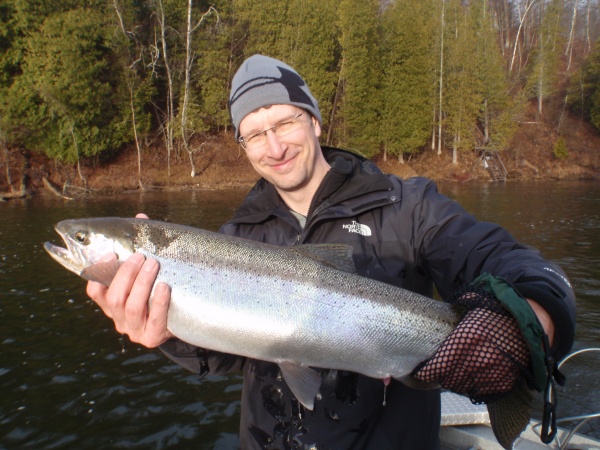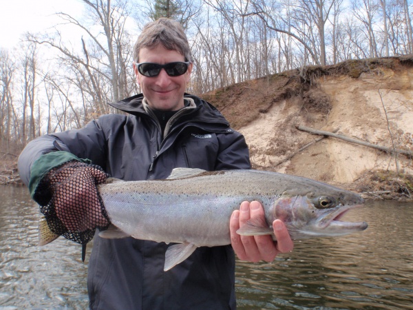 Here’s Mark from Minnesota who joined me for the past two days experiencing some excellent steelhead fishing on the Muskegon river in Michigan.