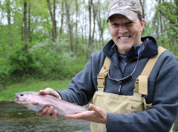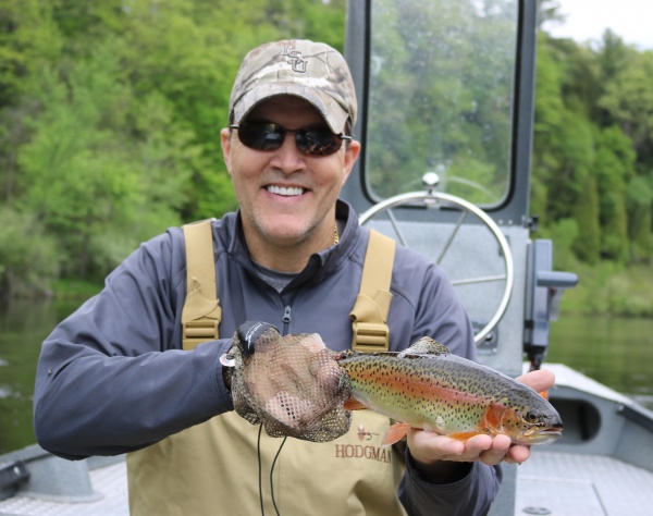 Jim with a beautiful rainbow trout from the Muskegon river.