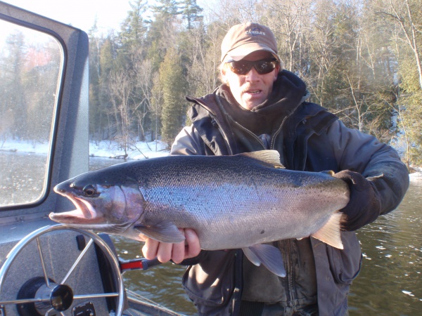 Water levels on the Muskegon are still low at 2,000 cfs. Look for the warmer weather next week to give us that surge of water needed to push more fish up the river system. Regardless, from what we’re seeing now we’re poised for a very good spring steelhead run on the Muskegon!! Just a little more water mixed with warmer nights will pull the trigger on the bite! We still have really good dates available in May! Don’t wait though; these spots are booking up quickly!