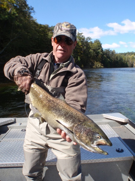 Here’s Dave with a one of the king salmon he hooked today. Dave found out first hand how hard these Muskegon river kings fight on fly gear. It’s one thing to hook a king; it’s by far another to land it.