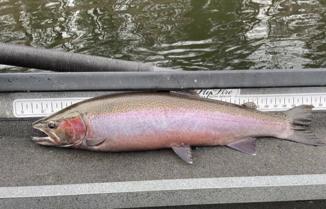 Good numbers of steelhead are present throughout the river system. With the continued strong flows and a brief warm spell next week should raise the water levels and bring more steelhead up from the lower stretches of the river system.