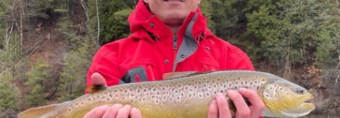 Here’s Calvin from Madison, WI with a awesome 22-inch Muskegon river brown trout.