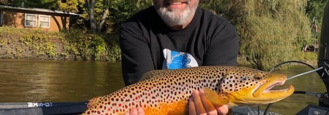 I’ve been fishing / guiding exclusively on the Muskegon River all year long for well over 20 years. In that time, I’ve seen many large size river browns but nothing compares to the beauty of this brown! I’m extremely proud and humbled to introduce my great friend and fishing client Greg from Big Rapids, MI with what can only be described as one of the most beautiful river browns I have ever seen. Congratulations Greg on a fish of a lifetime. I’m absolutely honored to have been a part of it.