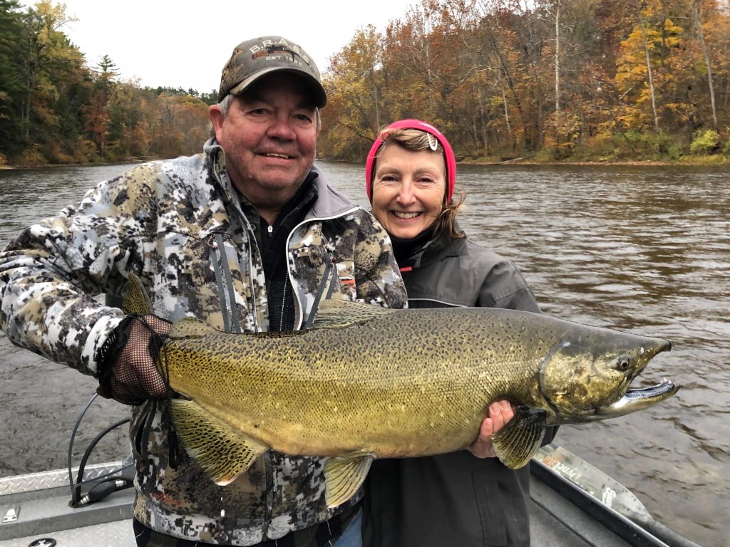 Here’s Marie and her husband Greg from Big Rapids, MI helping Marie hold her first ever king salmon from the Muskegon River. Great job Marie!