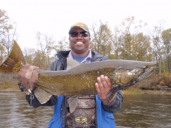 Chuck with an awesome 17lb. Muskegon river King! Salmon populations have much improved. More fresh king salmon are on the run.