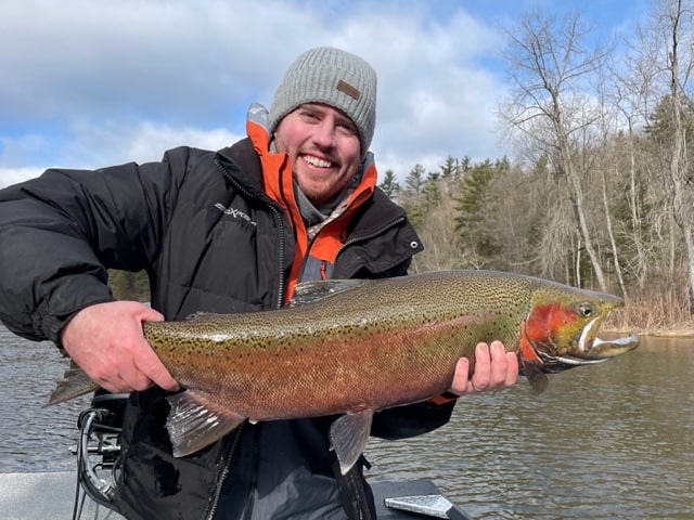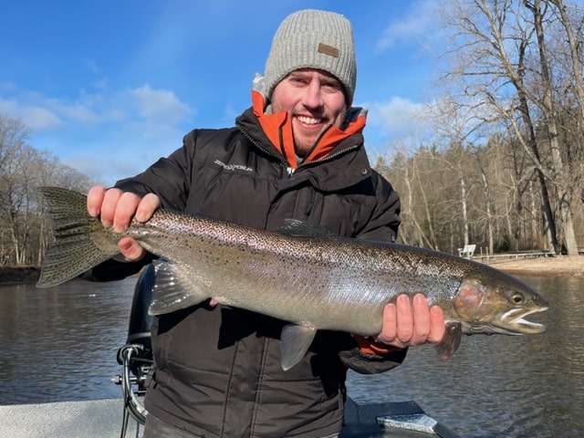 We are in a major transition of winter to spring fishing conditions on the Muskegon with water temps and levels rising triggering more steelhead up the river system as the spring run is in the initial stages.